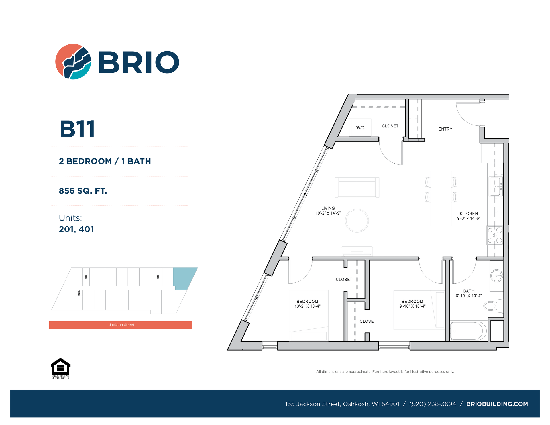 This is a 2 Bedroom, 1 Bathroom unit in the Brio Building, located in Oshkosh's vibrant center city and home to the member-owned Oshkosh Food Co-op. The Brio Building features 60 residential units ranging from studios to 2 bedrooms. The secure building has ample bike storage and is just steps from the riverfront recreation trail. The building is within walking distance to the University of Wisconsin - Oshkosh, the Fox River, and historic Main Street attractions. All units are equipped with in-unit washer & dryer, dishwasher, and select units have balconies. Many of the units have excellent views of downtown, the Fox, or both! A limited number of our studios also have murphy beds. Ask us about fully furnished units! Brio is a pet-friendly property.